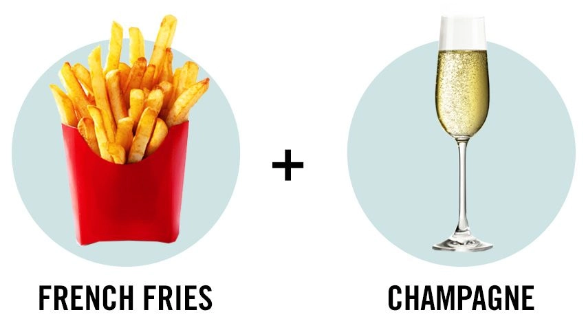 Both agree this is the *ideal* pairing, since the saltiness and richness of the French Fries are cut by the high-acidity (and bubbles!) of sparkling wine or Champagne. Take it from LaPratt: "Fried foods work well with Champagne. The bubbles help clean your palate in preparation for the next bite." You heard the man.